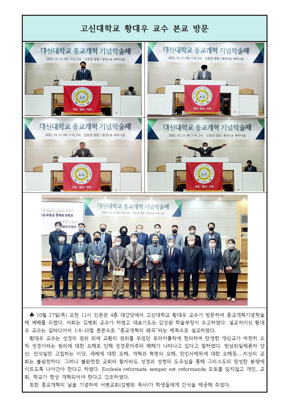 고신대학교 황대우 교수 본교 방문