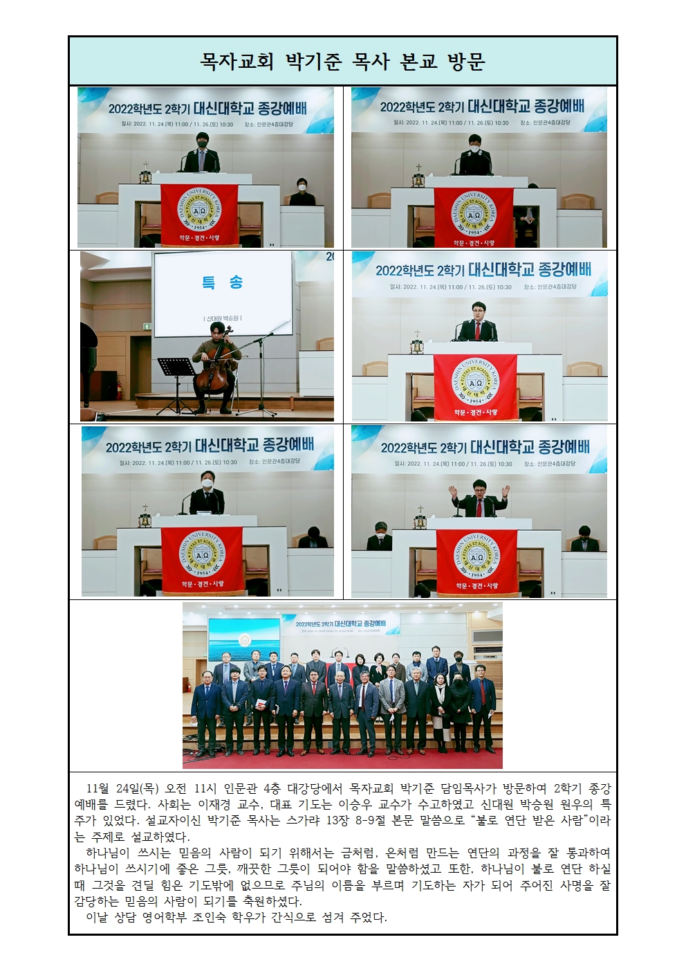 2022학년도 2학기 종강예배