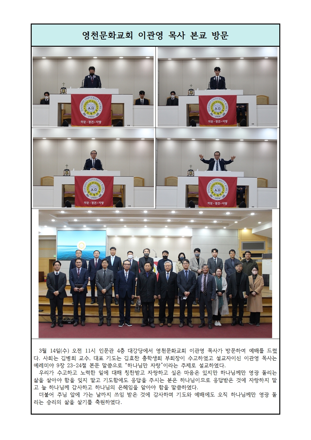 영천문화교회 이관영 목사 본교 방문