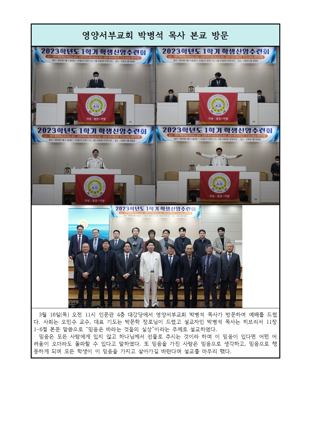 영양서부교회 박병석 목사 본교 방문