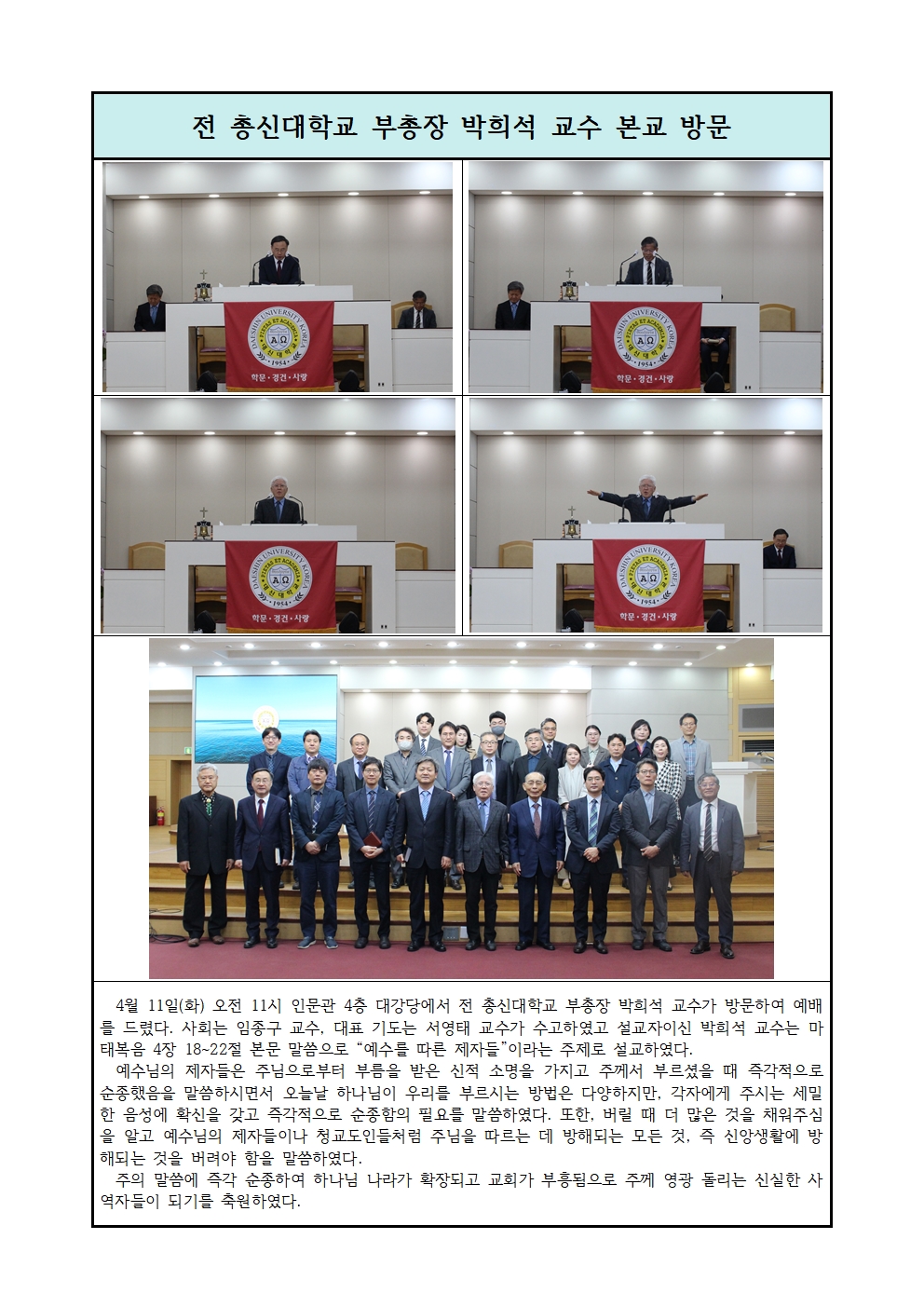 2023. 4. 13. 목. 샬롬나비 사무총장 이일호 교수 본교방문