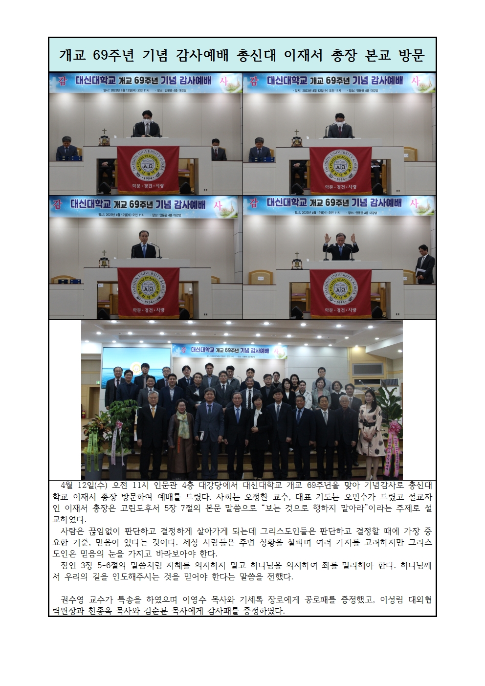 20230412 - 개교69주년 기념감사예배 총신대학교 이재서총장.hwp