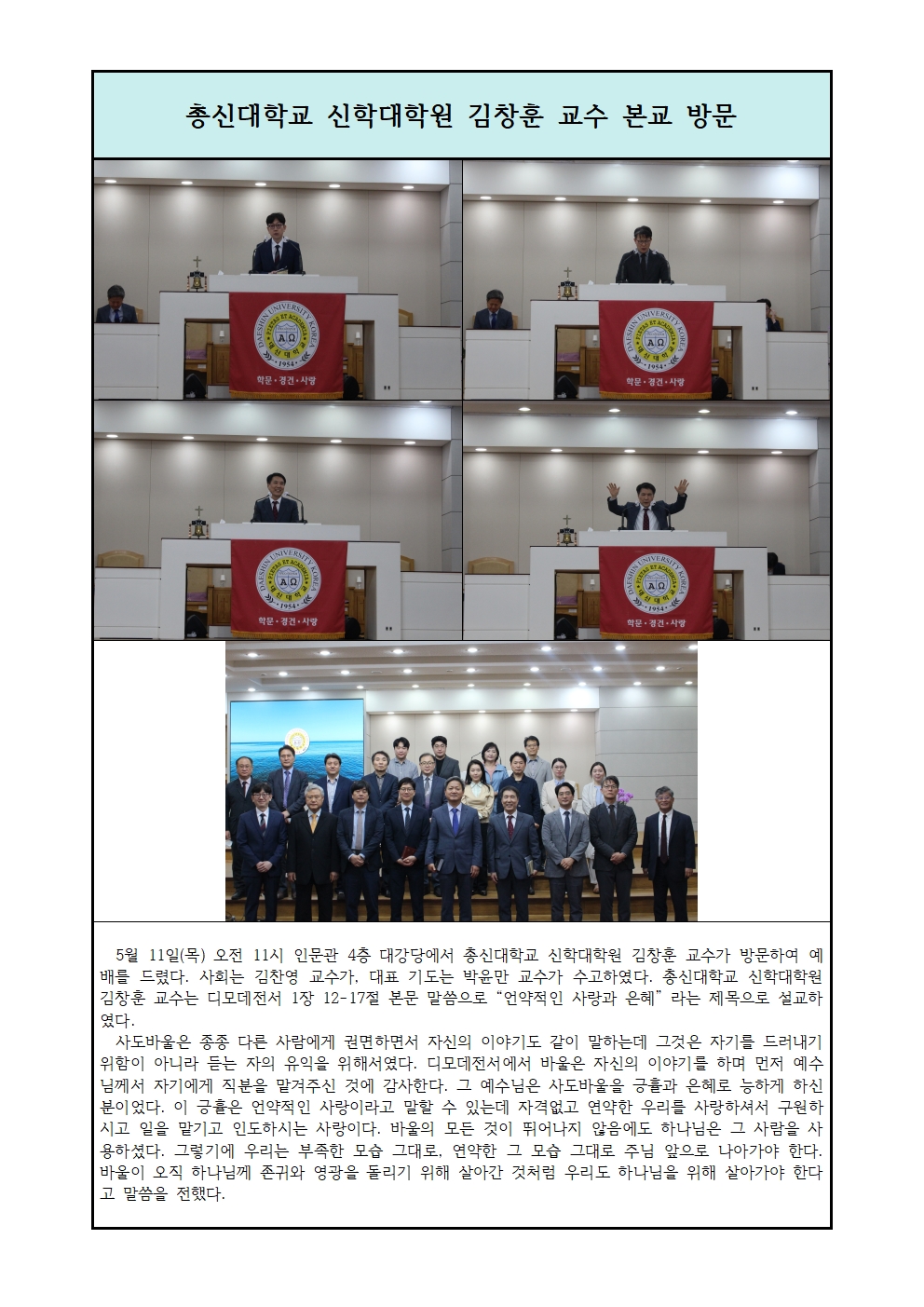 총신대학교 신학대학원 김창훈 교수 본교 방문