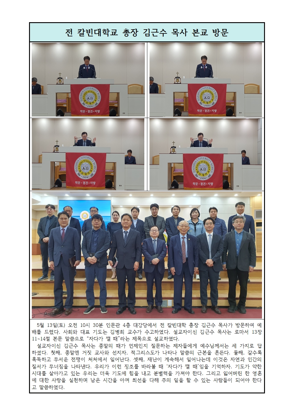 전 칼빈대학교 총장 김근수 목사 본교 방문(5/13)