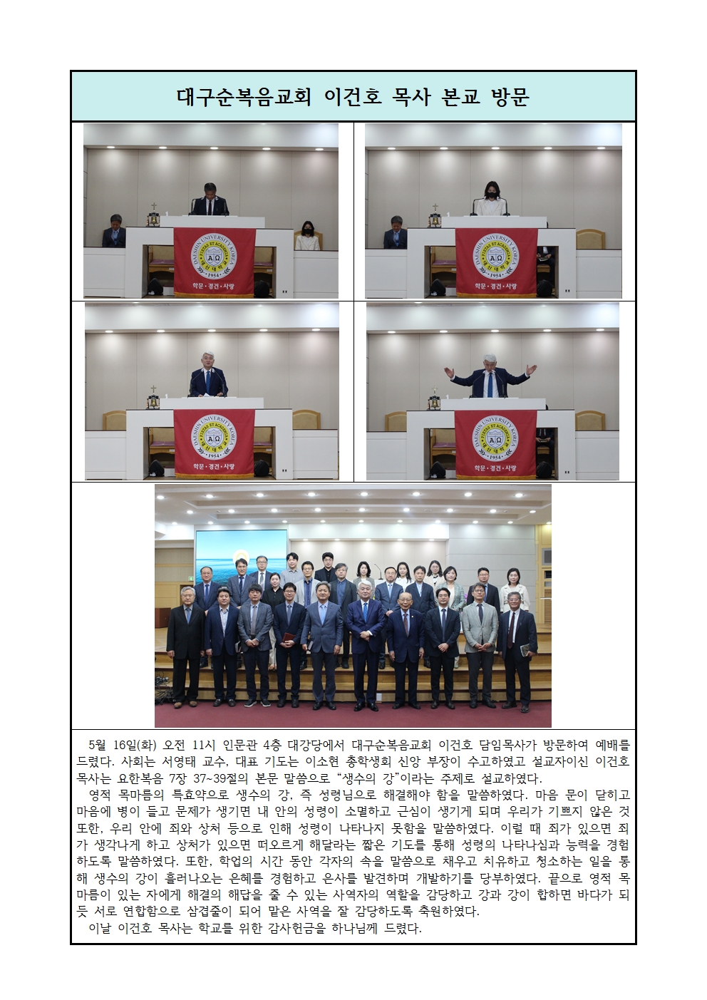 대구순복음교회 이건호 목사 본교 방문