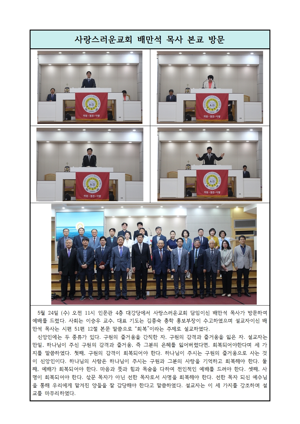 사랑스러운교회 배만석 목사 본교 방문