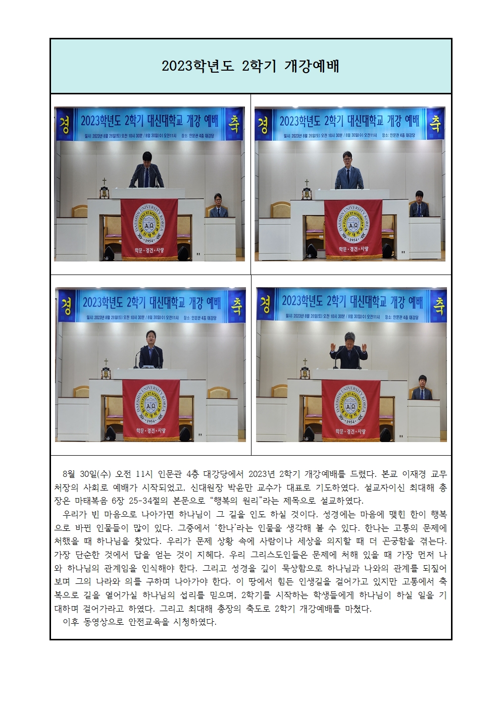2023학년도 2학기 개강예배