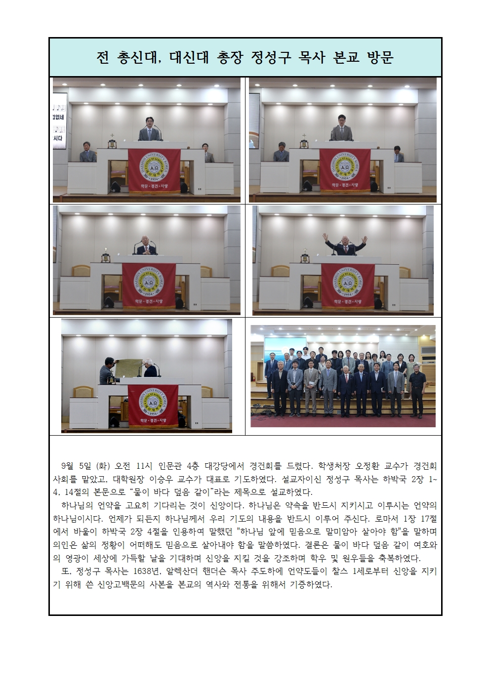 전 총신대, 대신대 총장 정성구 목사 본교 방문