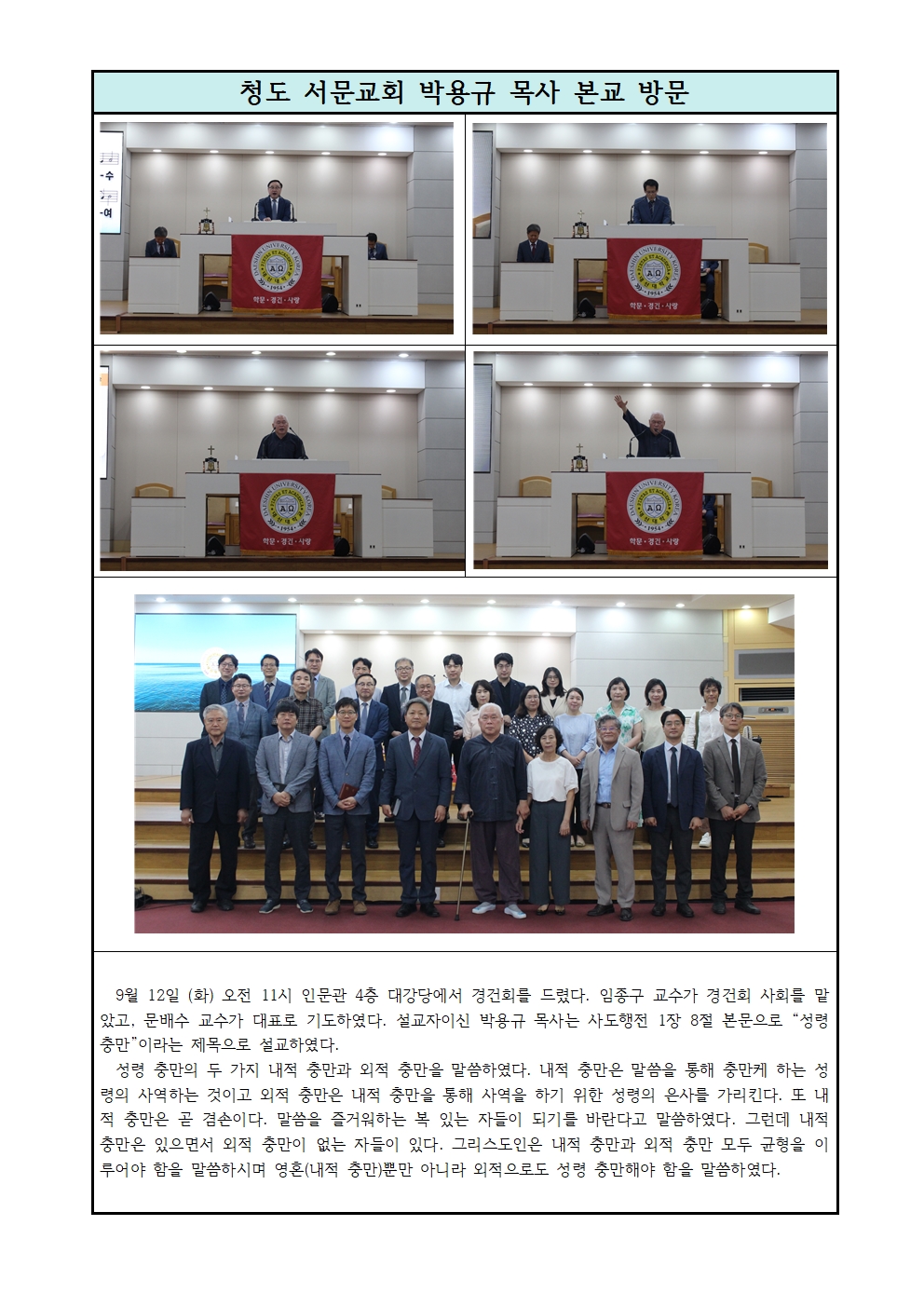 (9/12) 청도 서문교회 박용규 목사 본교방문
