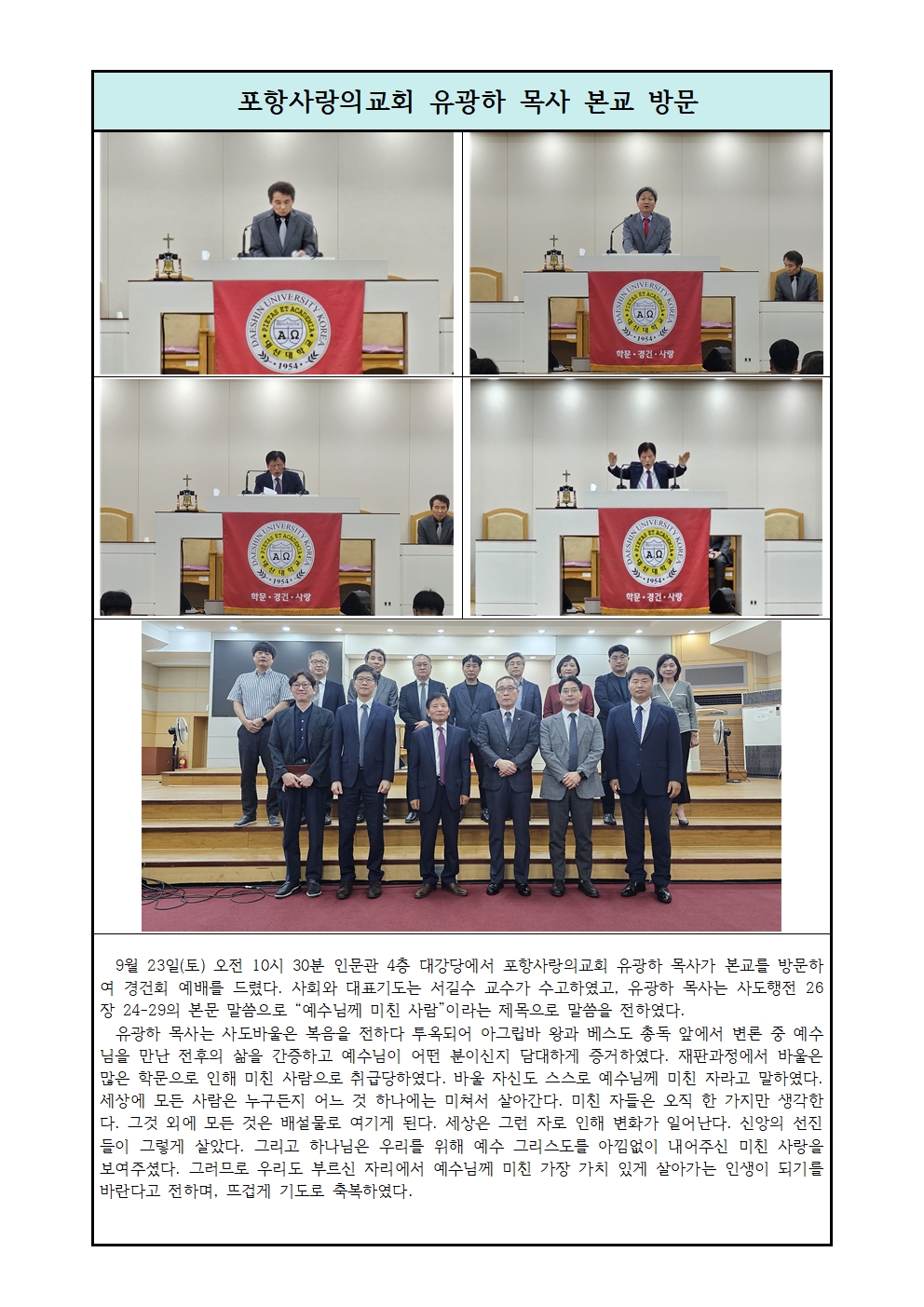 포항사랑의 교회 유광하 목사 본교 방문.hwp