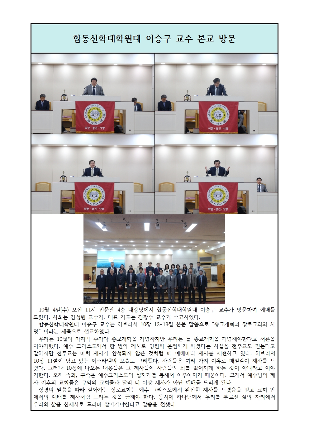 합동신학대학원대 이승구 교수 본교 방문