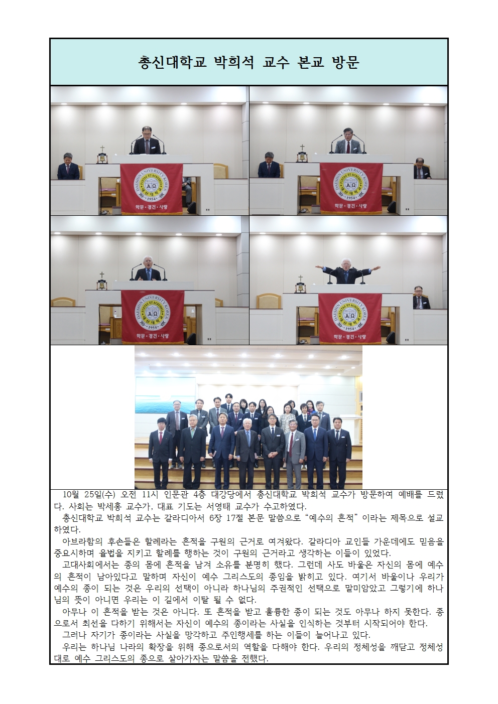 총신대학교 박희석 교수 본교 방문