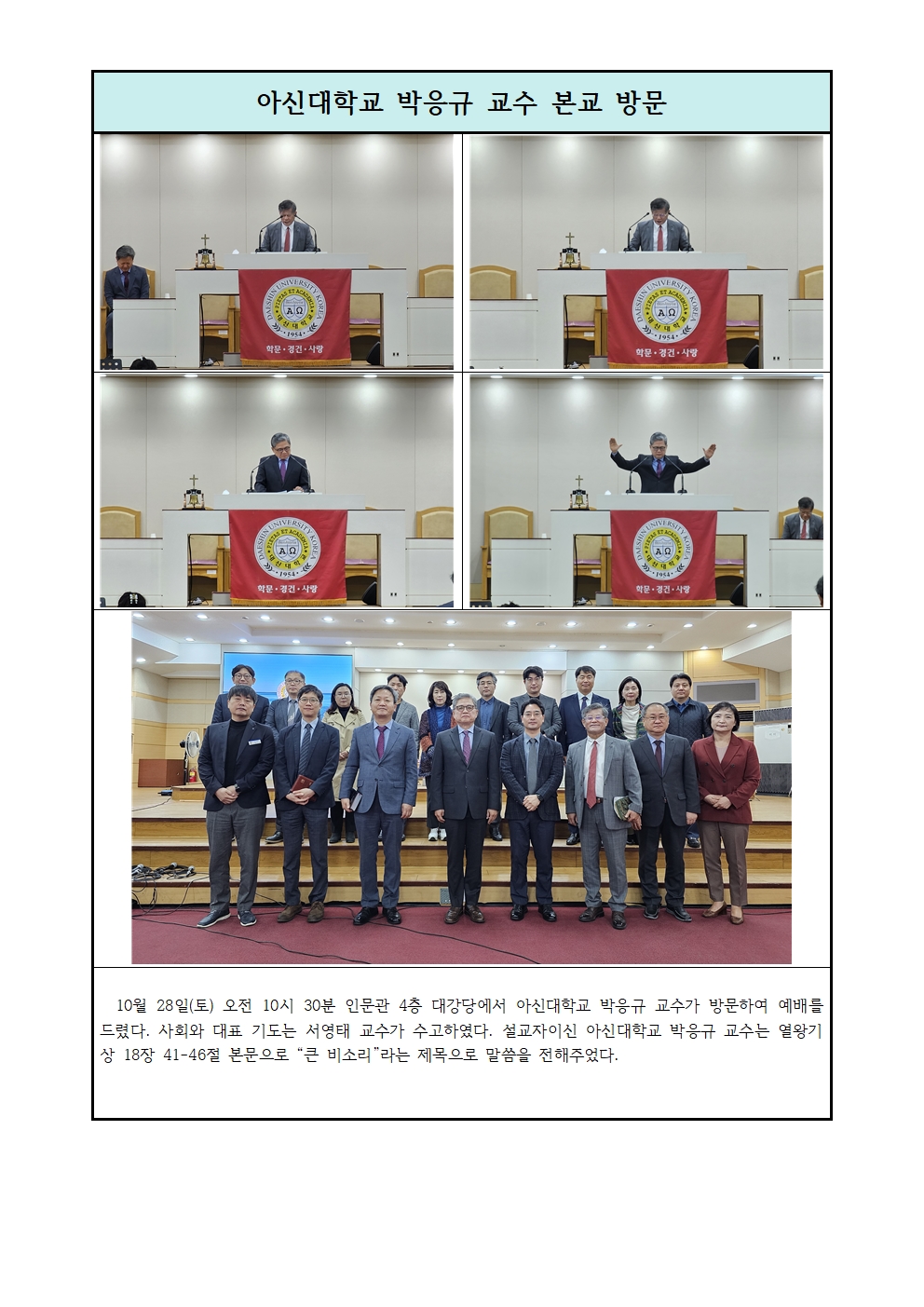 전하리교회 조한권 목사 본교 방문(10.31.화)