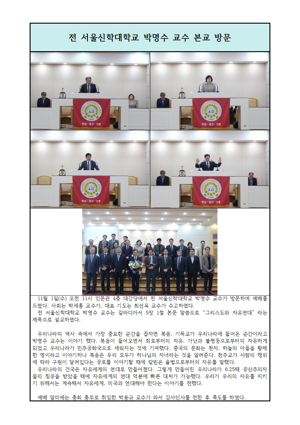 전 서울신학대학교 박명수 교수 본교 방문