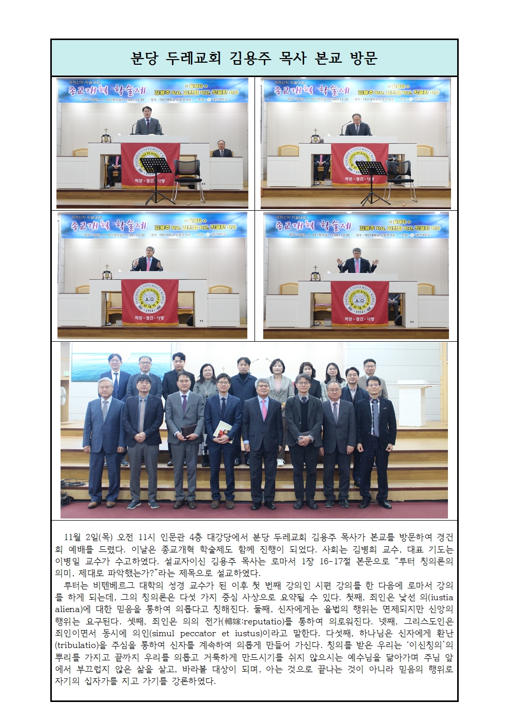분당두레교회 김용주 목사 본교 방문.hwp