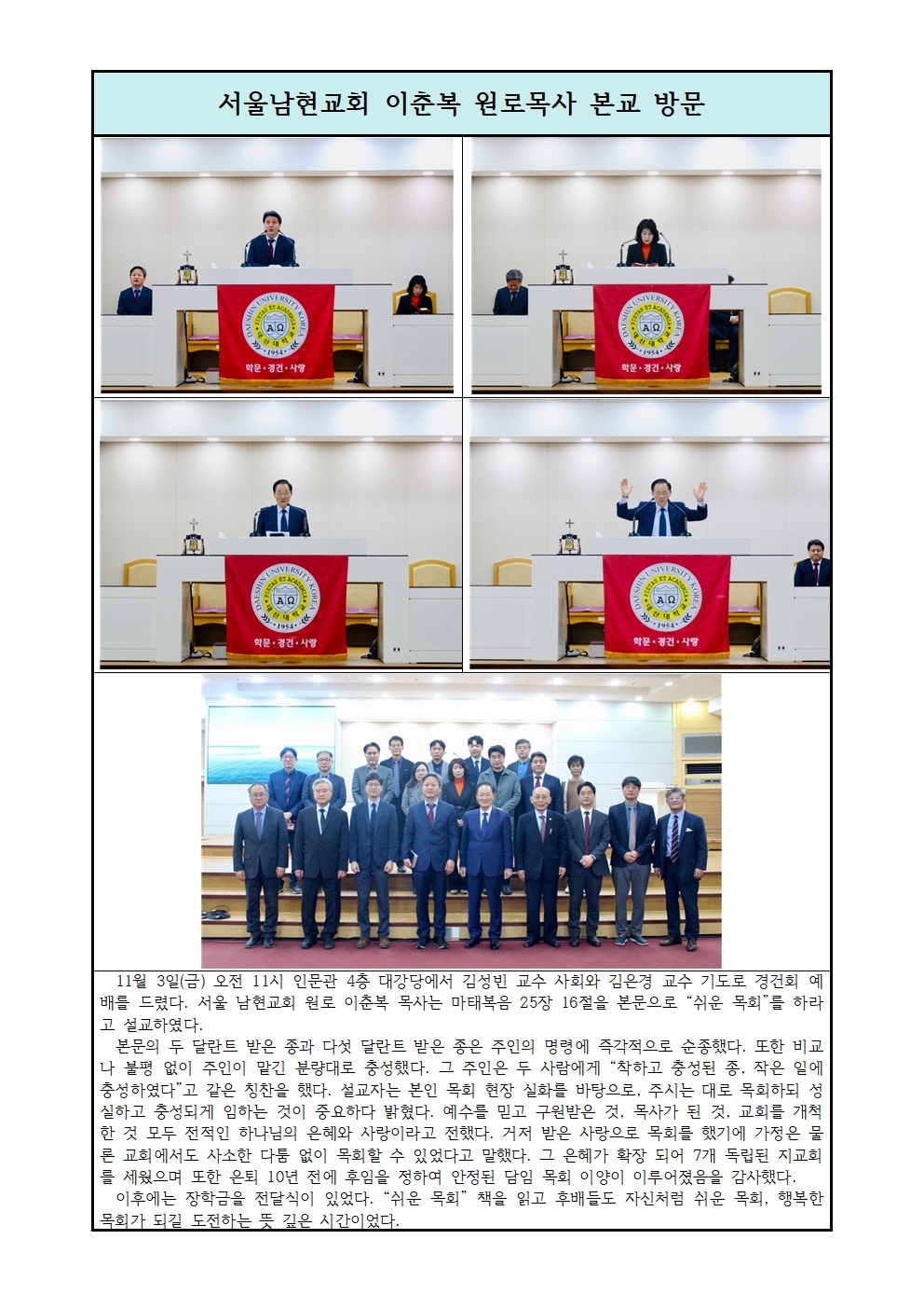 서울남현교회 이춘복 원로목사 본교 방문.hwp