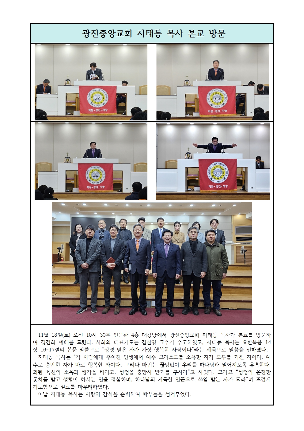 광진중앙교회 지태동 목사 본교 방문.hwp
