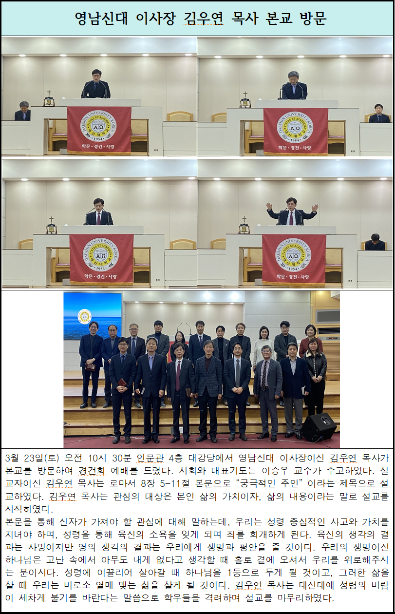 영남신대 이사장 김우연 목사 본교 방문 (3/23)