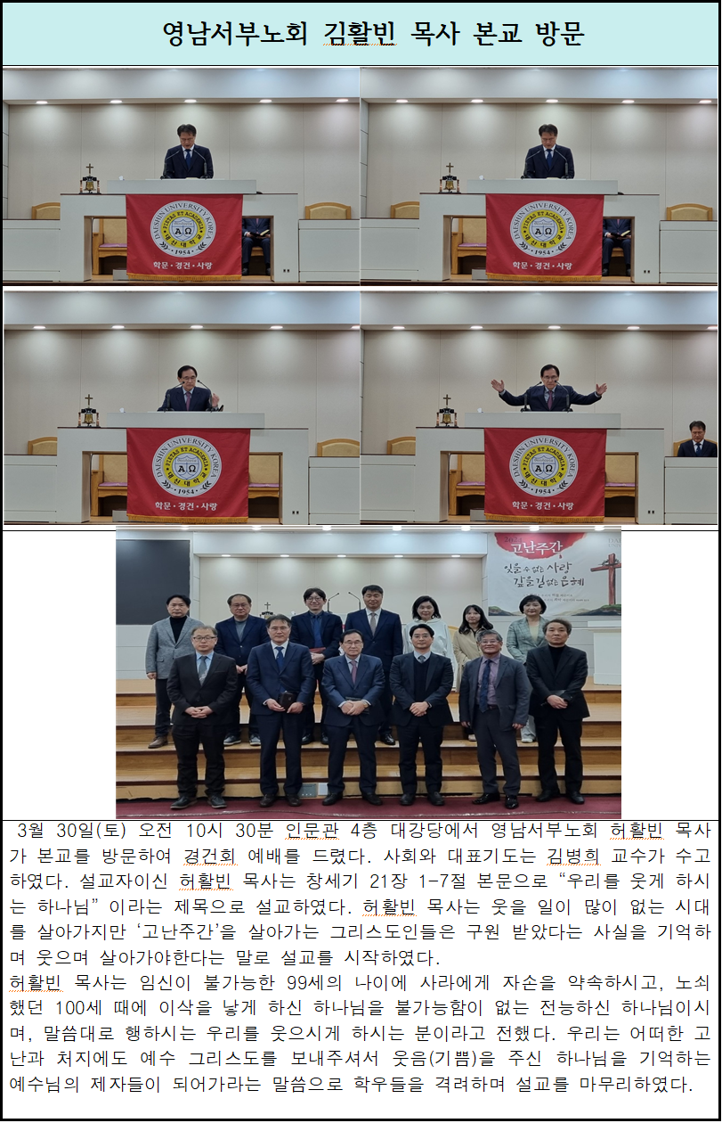 영남서부노회 허활빈 목사 본교 방문 (3/30)
