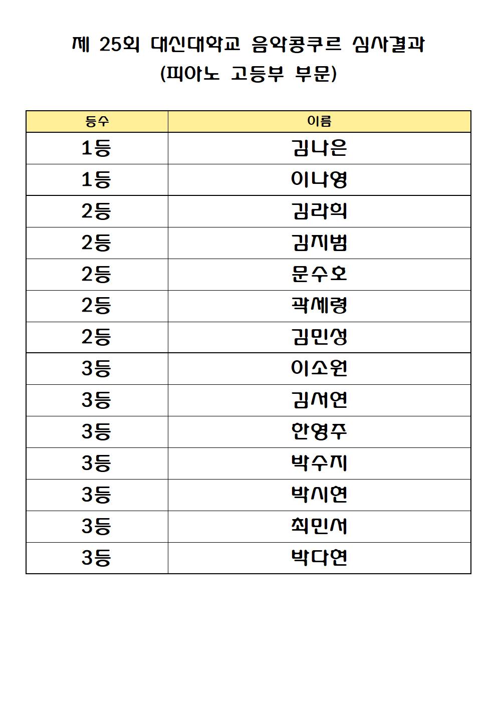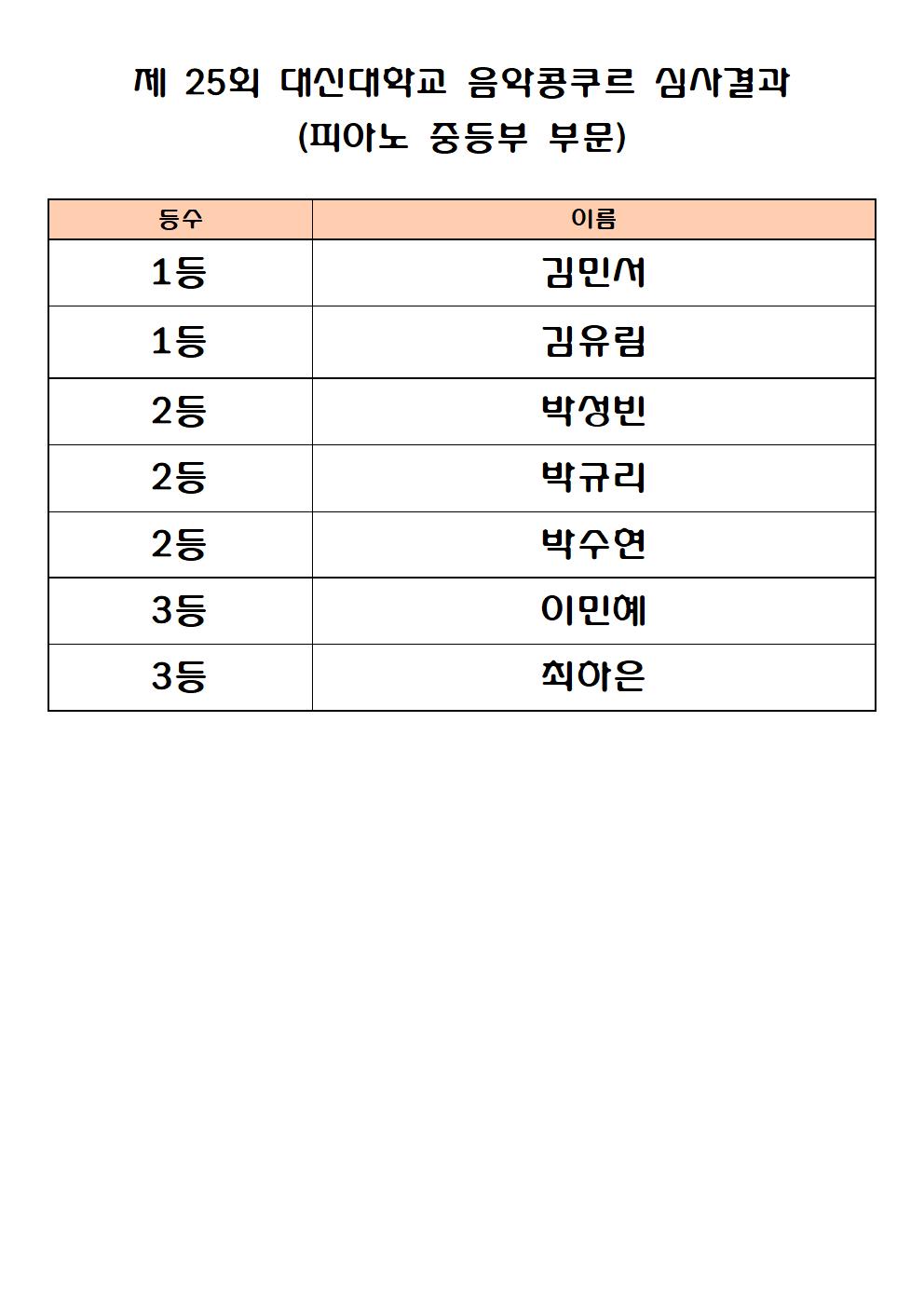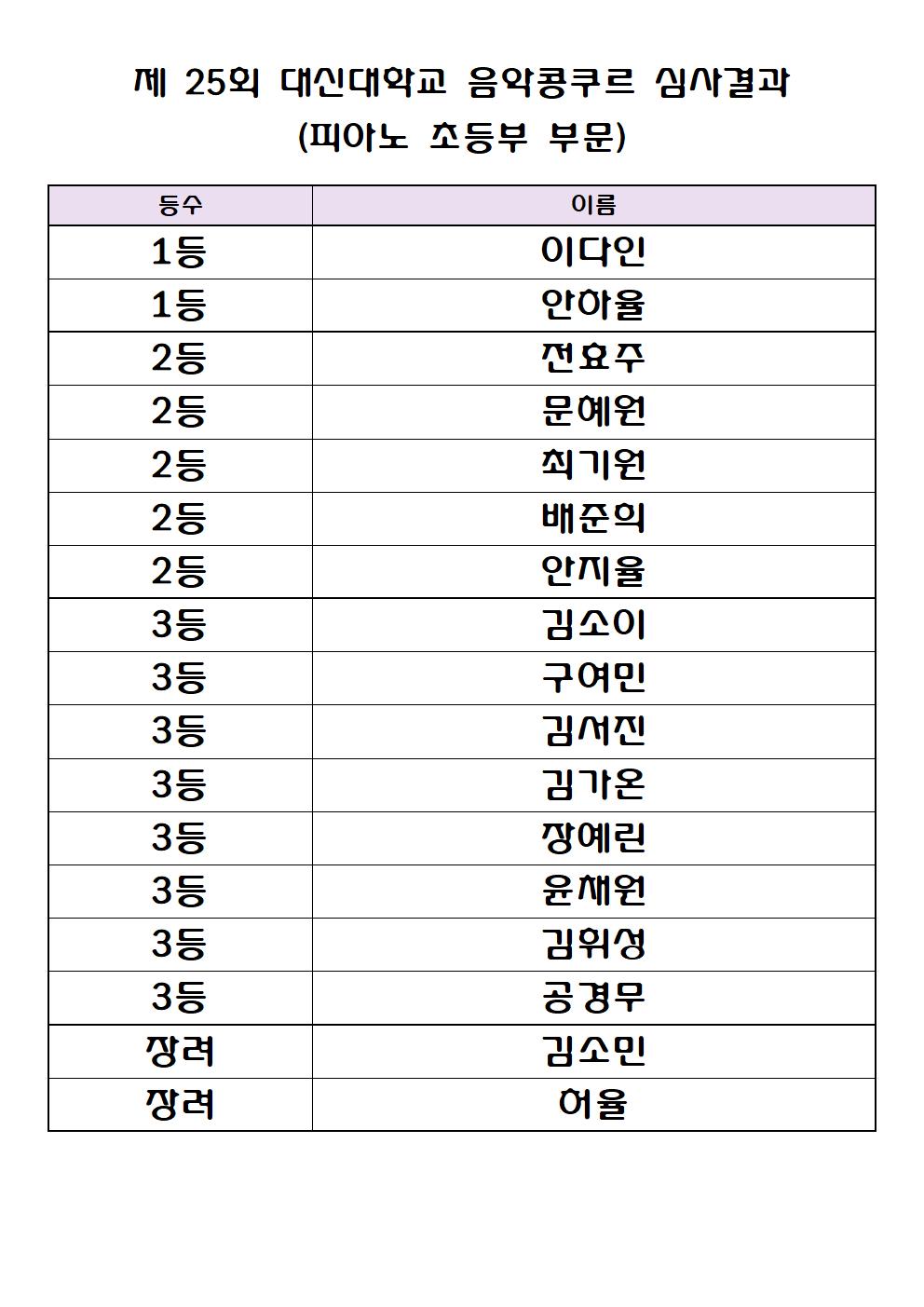 < 제 25회 대신대학교 음악콩쿠르 심사결과 발표 >