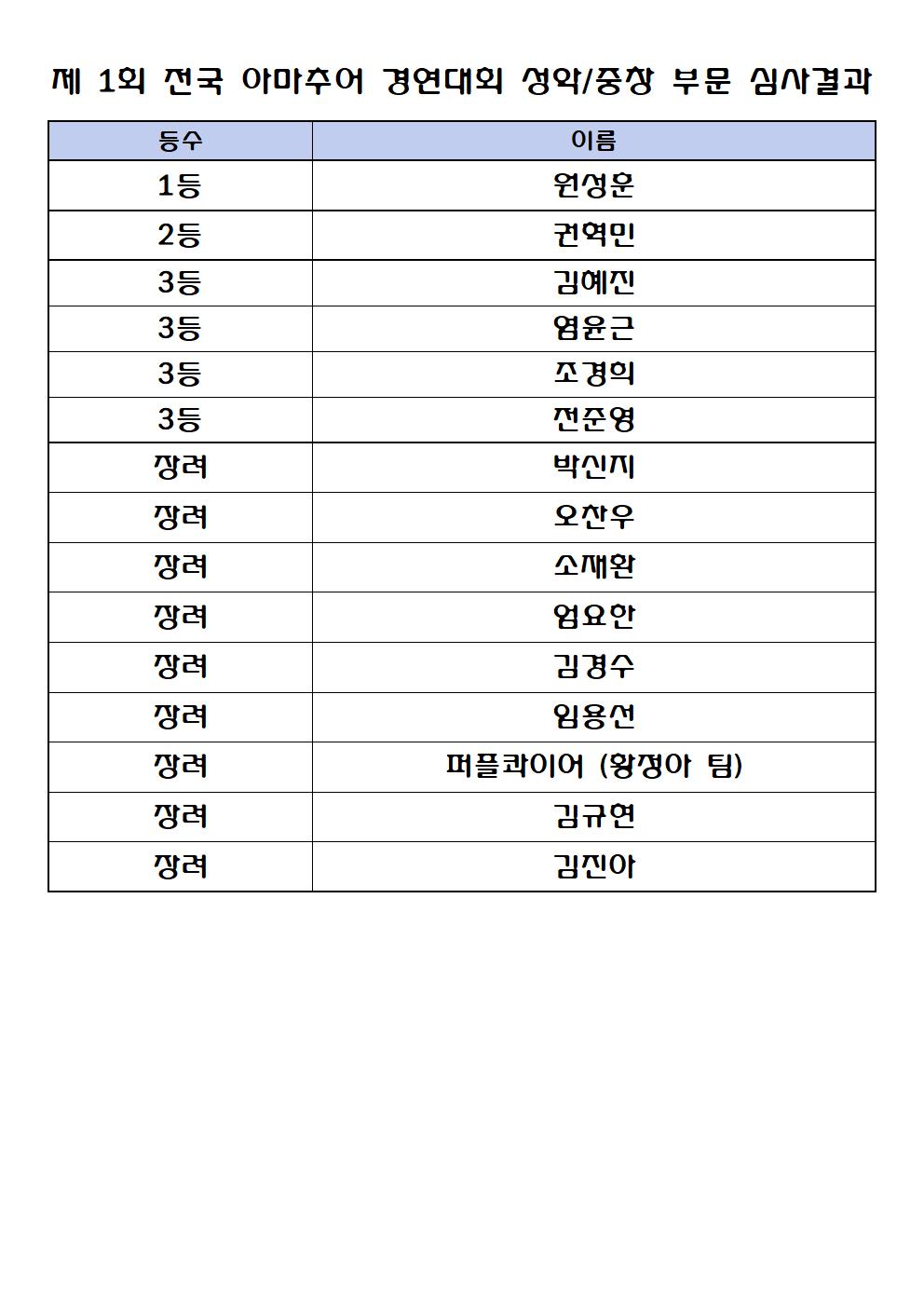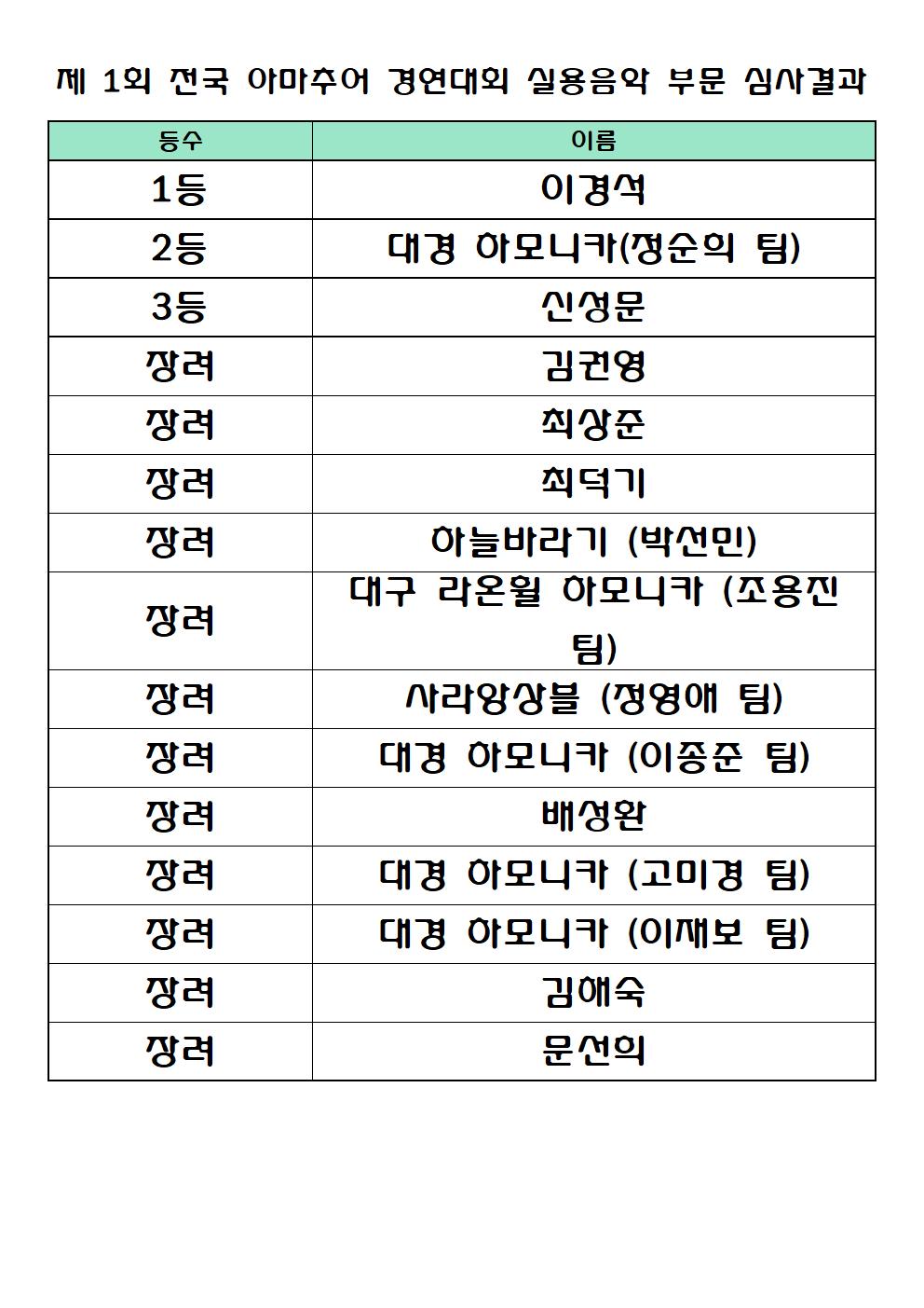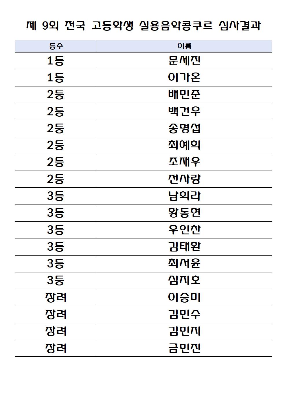 < 제 25회 대신대학교 음악콩쿠르 심사결과 발표 >
