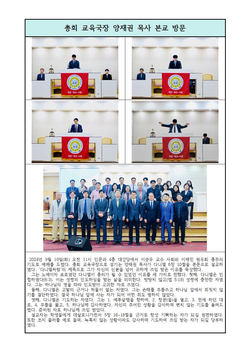 총회 교육국장 양재권 목사 본교 방문
