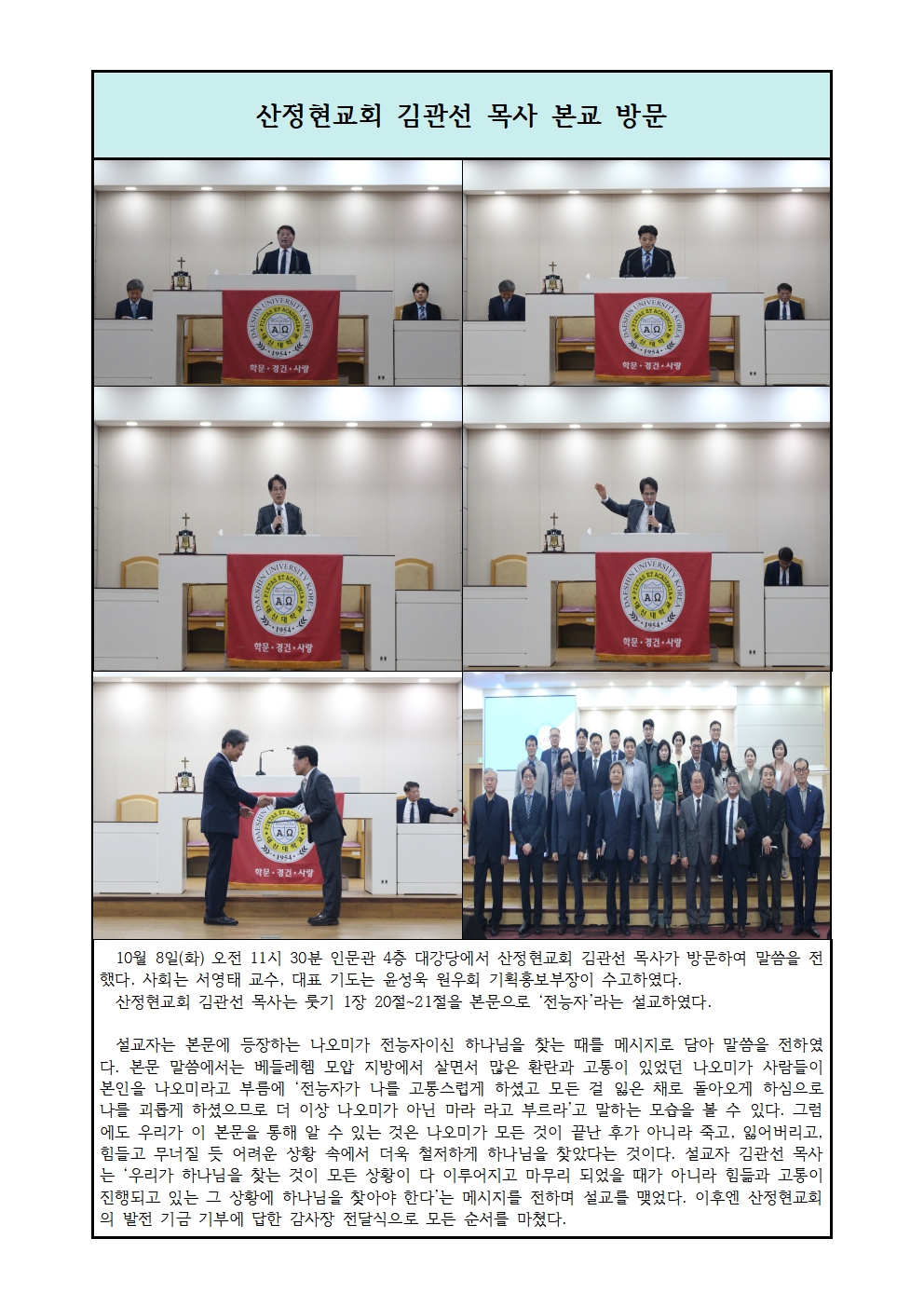 산정현교회 김관선 목사 본교 방문