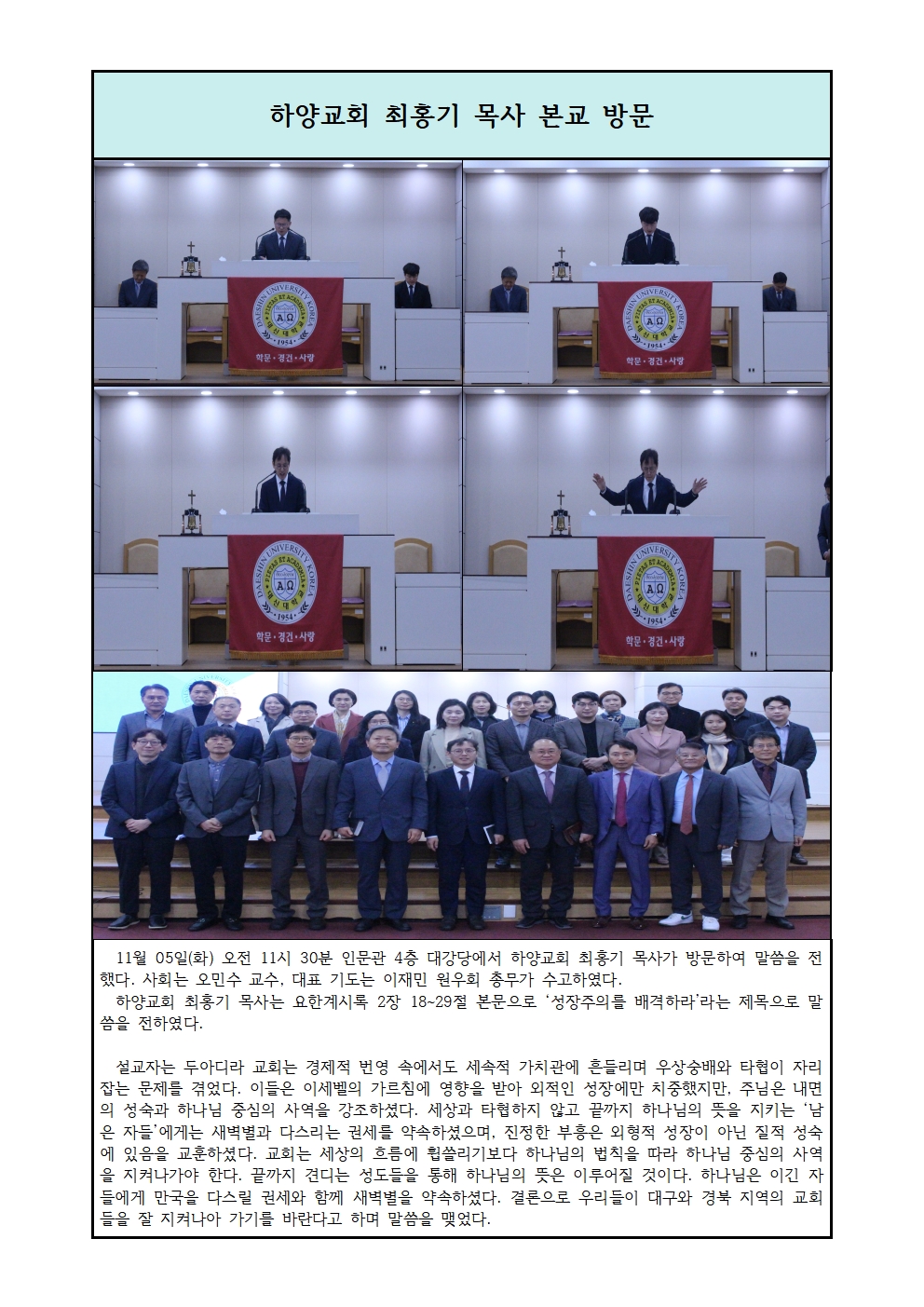 하양교회 최홍기 목사 본교 방문
