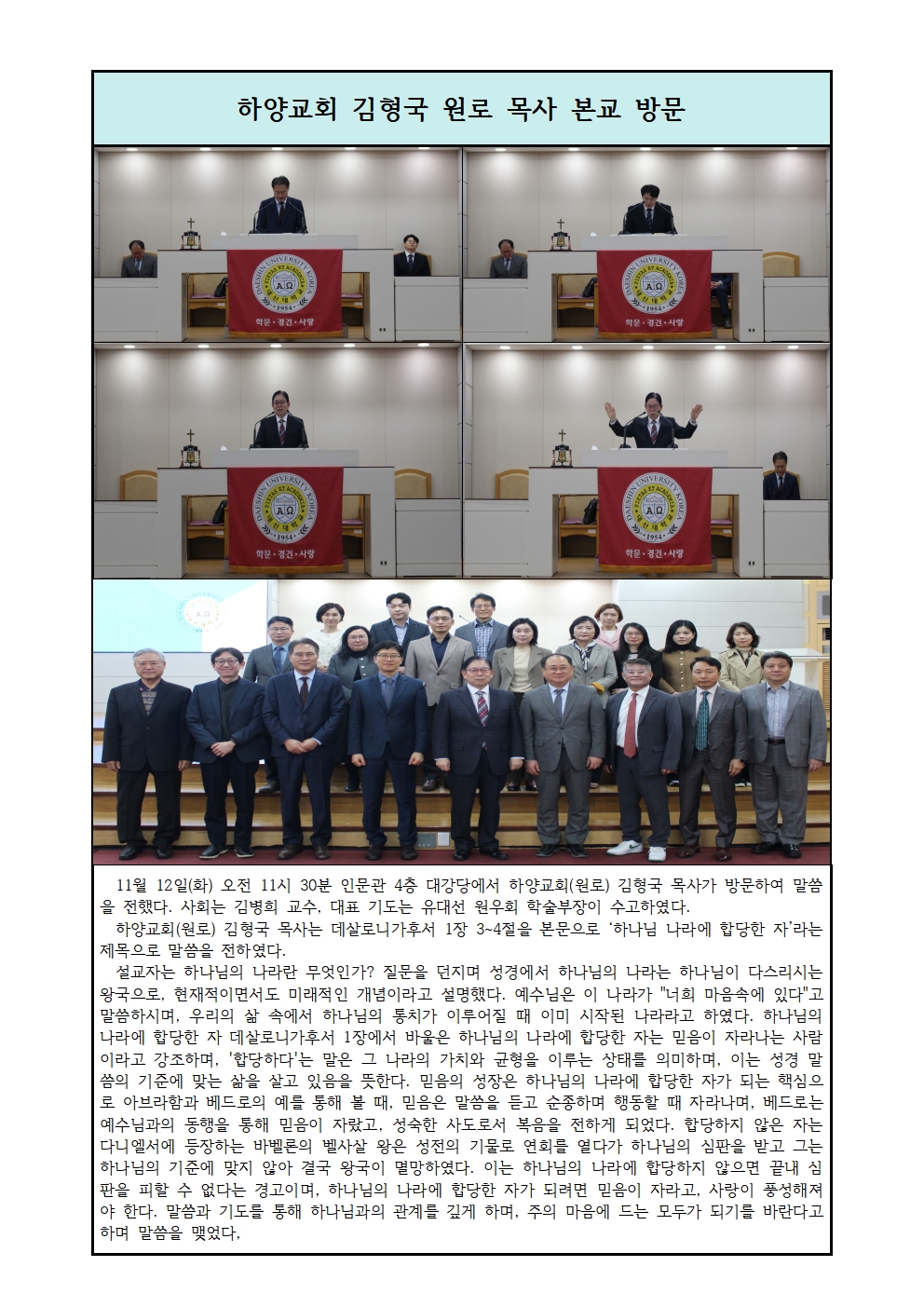 하양교회 김형국 원로 목사 본교 방문.hwp