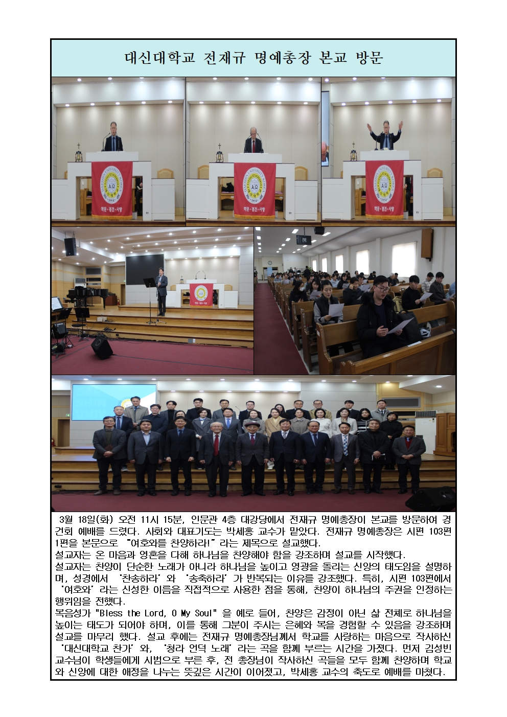 대신대학교 전재규 명예총장 본교 방문