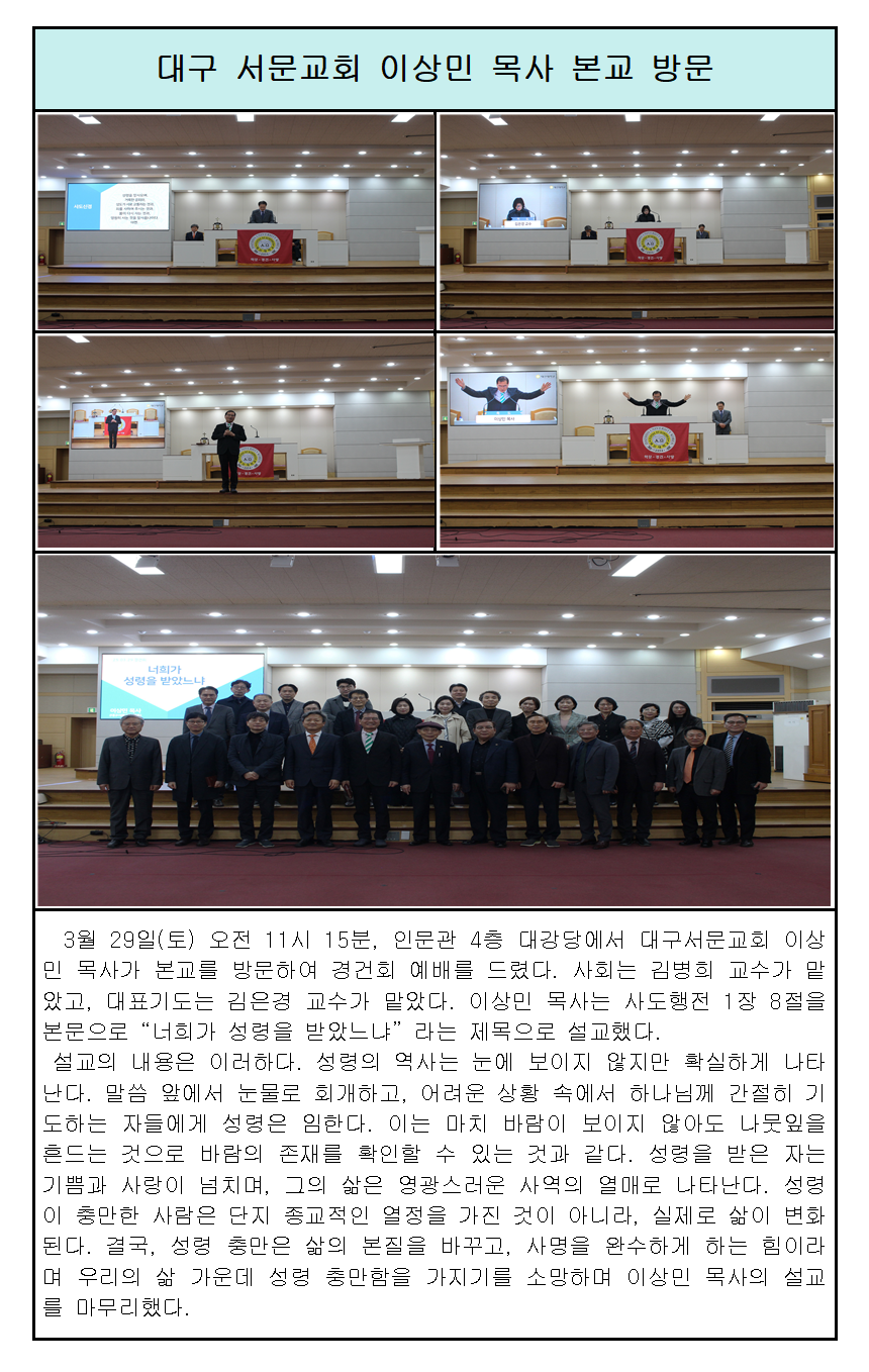 대구서문교회 이상민 목사 본교 방문