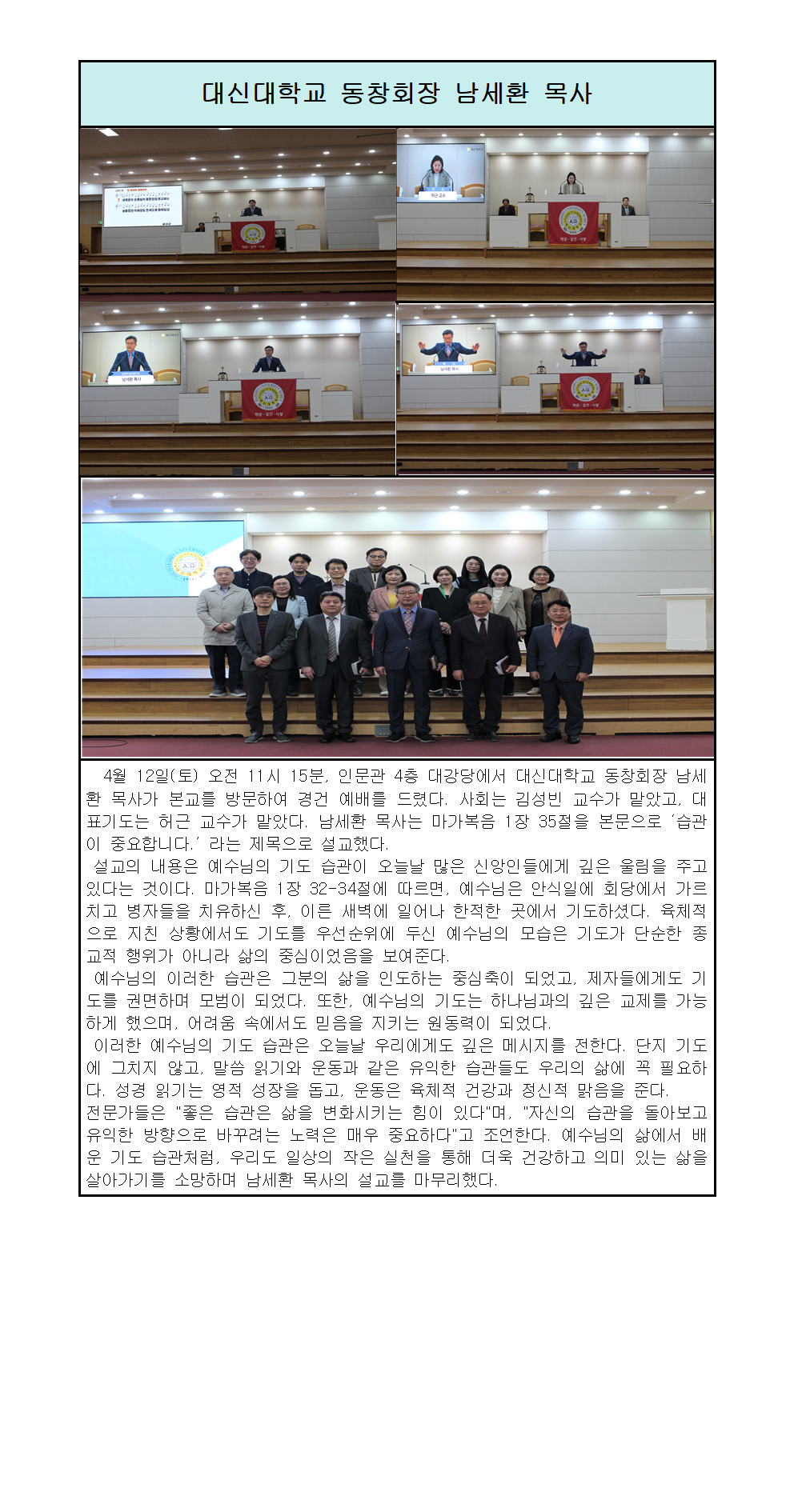 영천동산교회 최기목 목사 본교 방문(4/11)