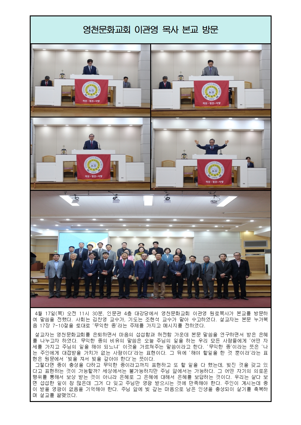 영천문화교회 이관영목사 본교 방문 (4/17)