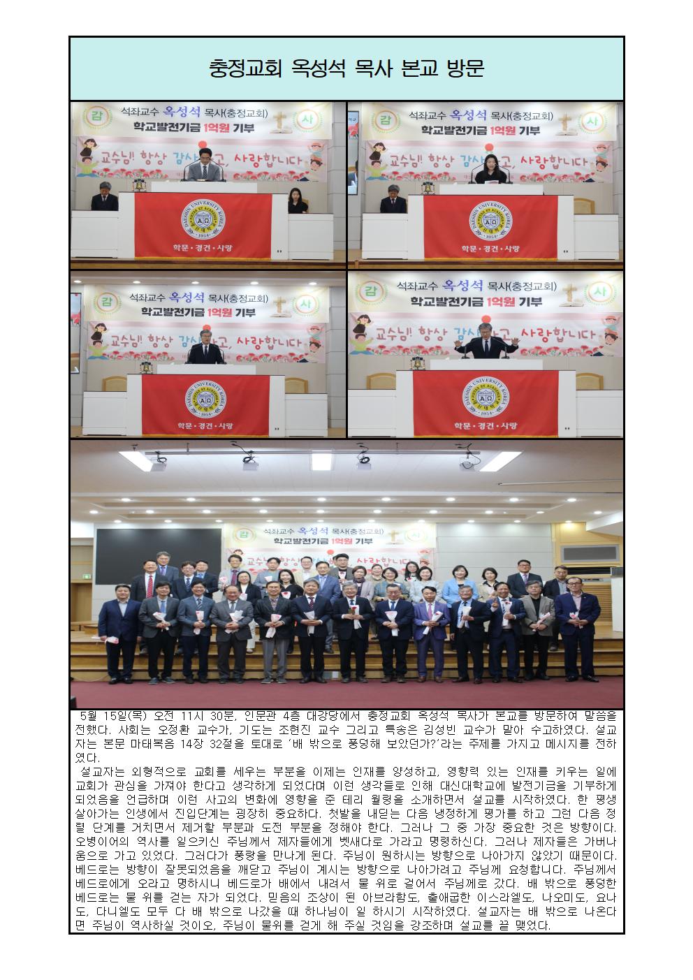 충정교회 옥성석 목사 본교 방문 (5/15)