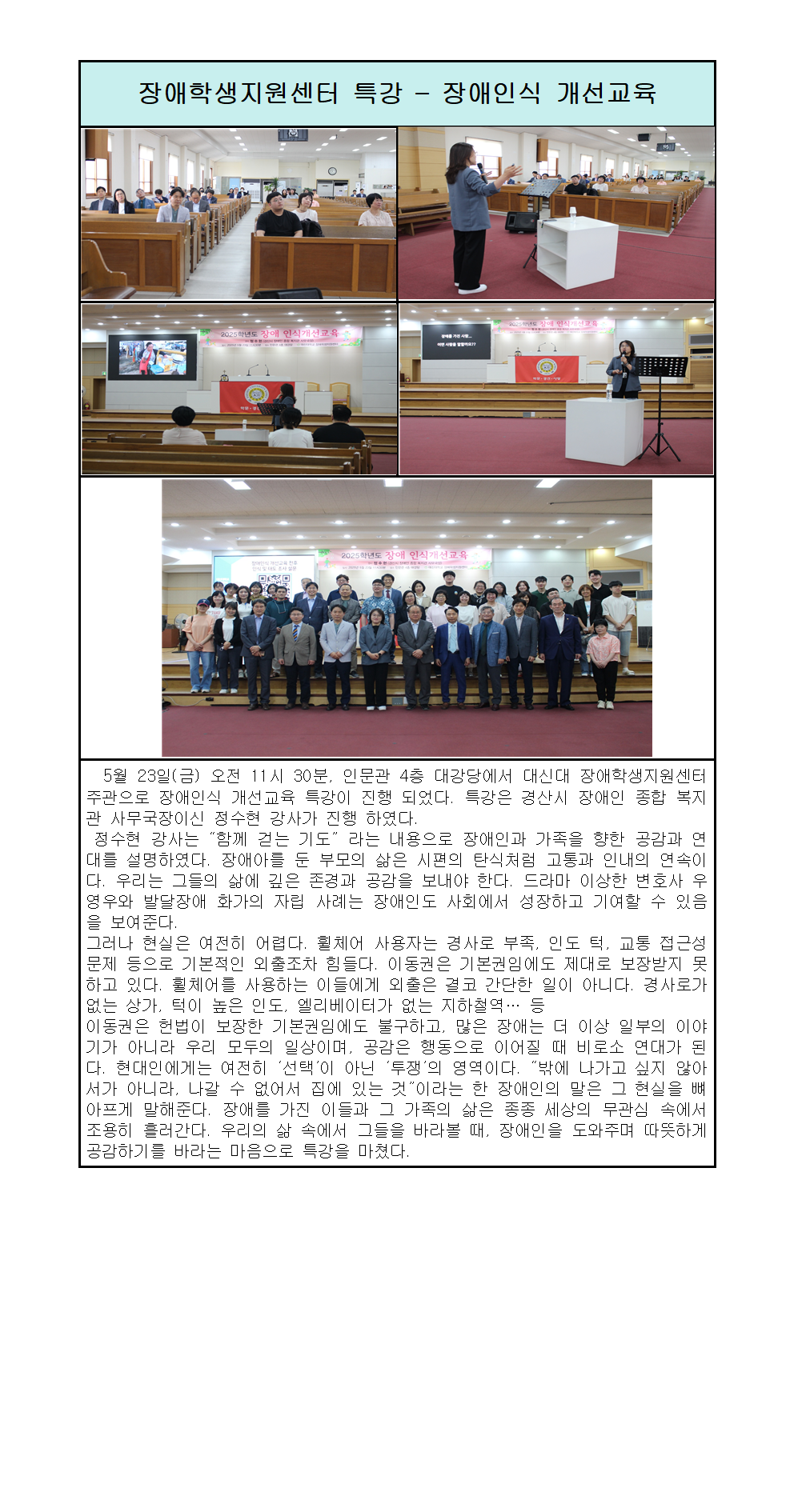 장애인식 개선교육 정수현 강사 특강