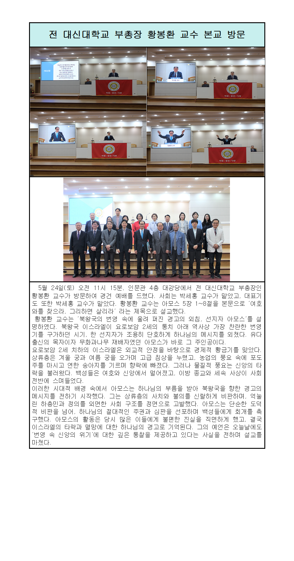 전 대신대학교 부총장 황봉환 교수 경건회.hwp