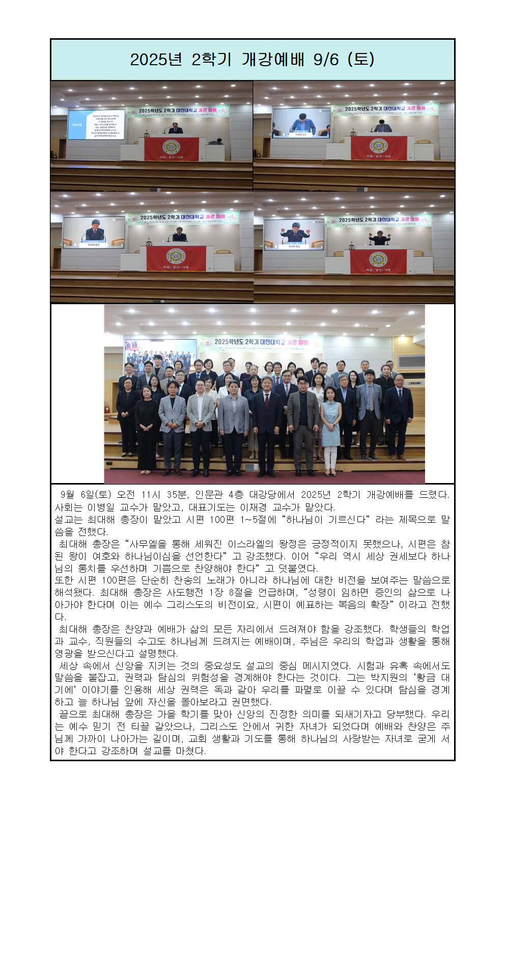 2025년 2학기 개강예배 9/6 (토)