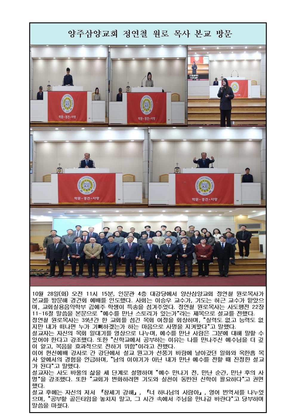 양산 삼양교회 정연철 원로 목사 본교 방문(10/28)
