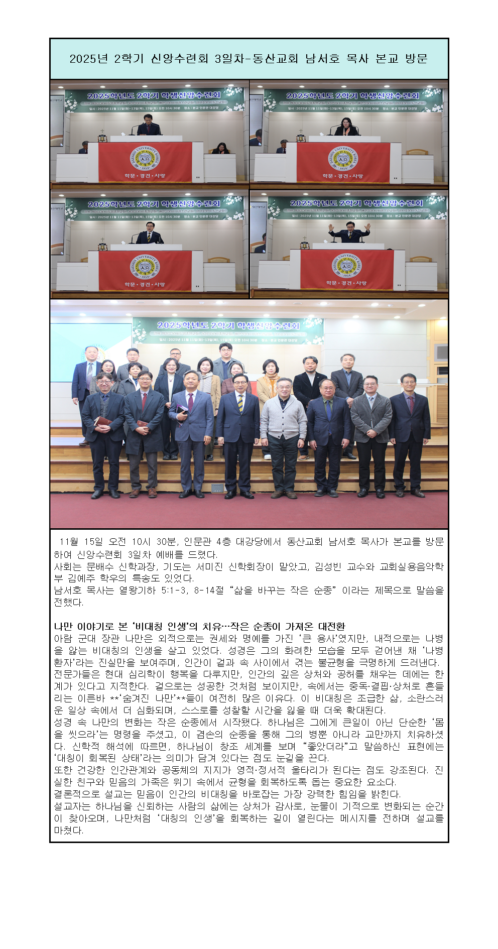 신앙수련회 3일차 동산교회 남서호 목사 본교 방문.hwp