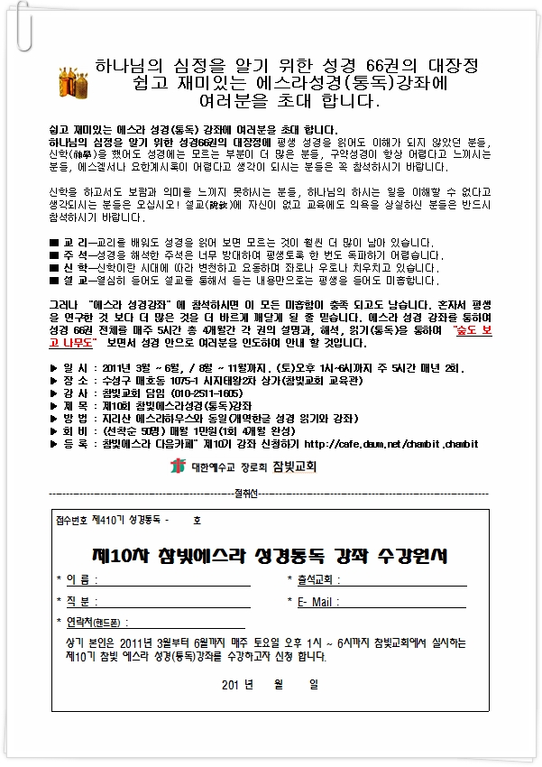 [대구 시지동] 참빛교회 - "에스라 성경강좌" 3월 개강!!클릭!^_^