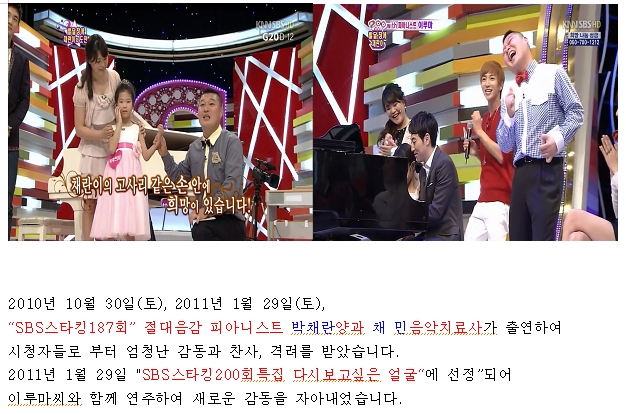 2011년 대한음악치료학회 대구경북지부에서는 훌륭한 음악치료사들을 양성하고자 합니다. 바우처기관에서 정식 인정하는 공신력있는 자격증입니다. - 문의바람 : 20명 선착순접수(조기마감 될 수 있습니다.) - 문의 : 010-3903-6624 대표 황준성 대구대학교 이학석사(직업재활전공) 대한음악치료학회대구경북지부 싸이클럽홈페이지 http://club.cyworld.com/ClubV1/Home.cy/53958584 강의문의 : 채 민음악치료전문가(스타킹 출연 187회, 200회특집), 황준성 직업재활사 연주문의 : 천재피아니트 박채란양(스타킹 출연 187회, 200회특집) 문 의 : F.M.House대표 황준성 |