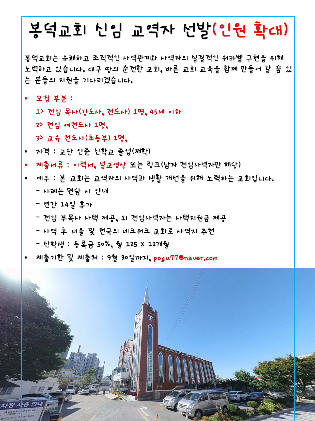 | 봉덕교회 2023년 정기 신임교역자 선발(재공지) | |||||||||