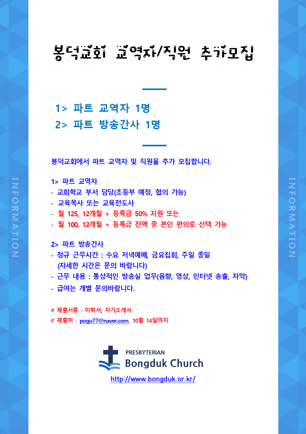 (끌어올림)대구동성교회에서 함께 동역하실 사역자를 모십니다.
