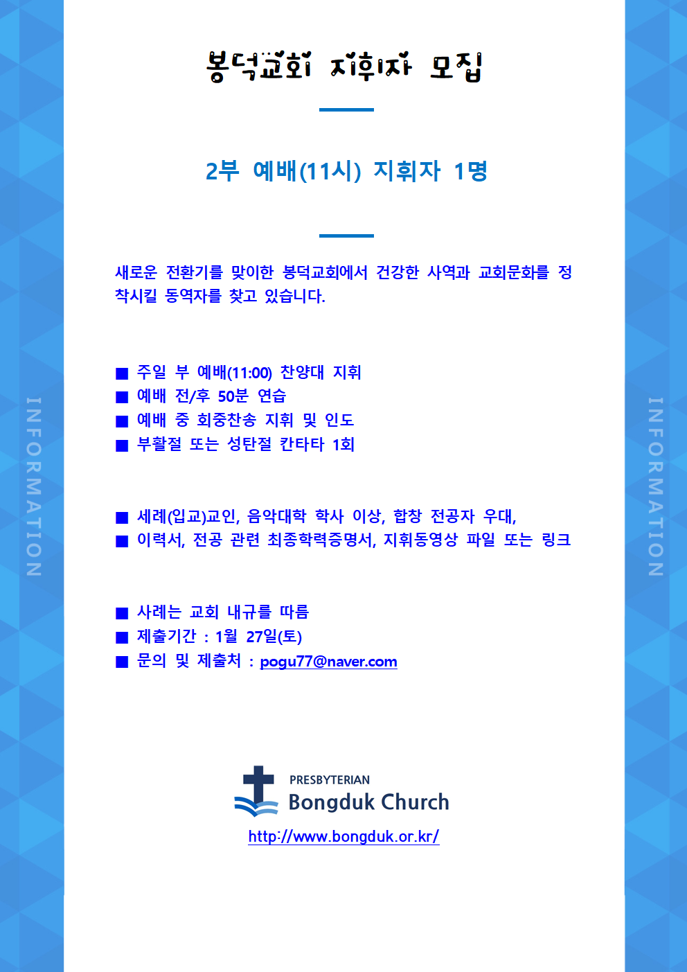 봉덕교회 지휘자 모집