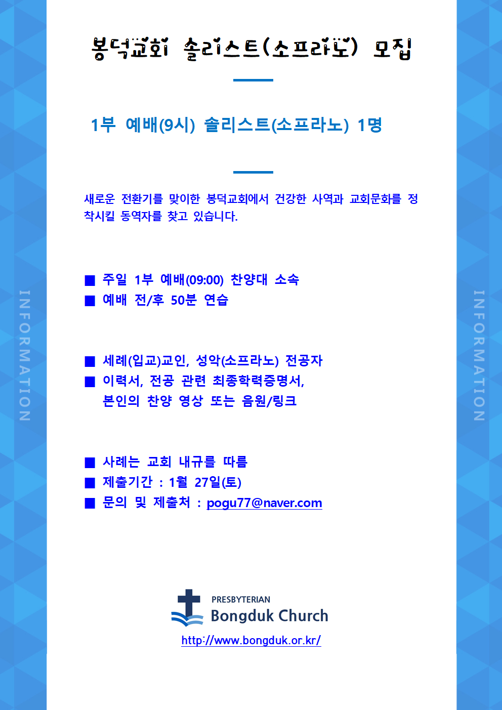 김천 부곡 교회에서 파트사역자(교육목사, 교육전도사)를 모십니다