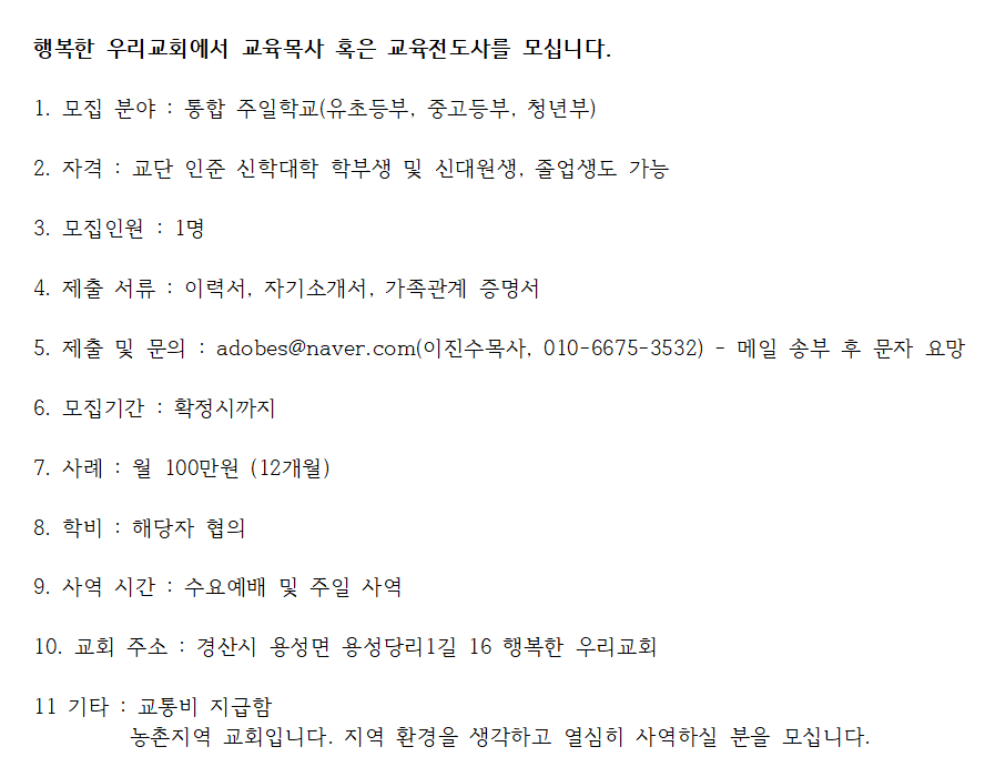 모집 기업(교회)