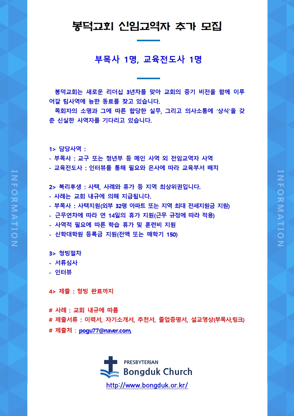 봉덕교회 교역자 선발 공고