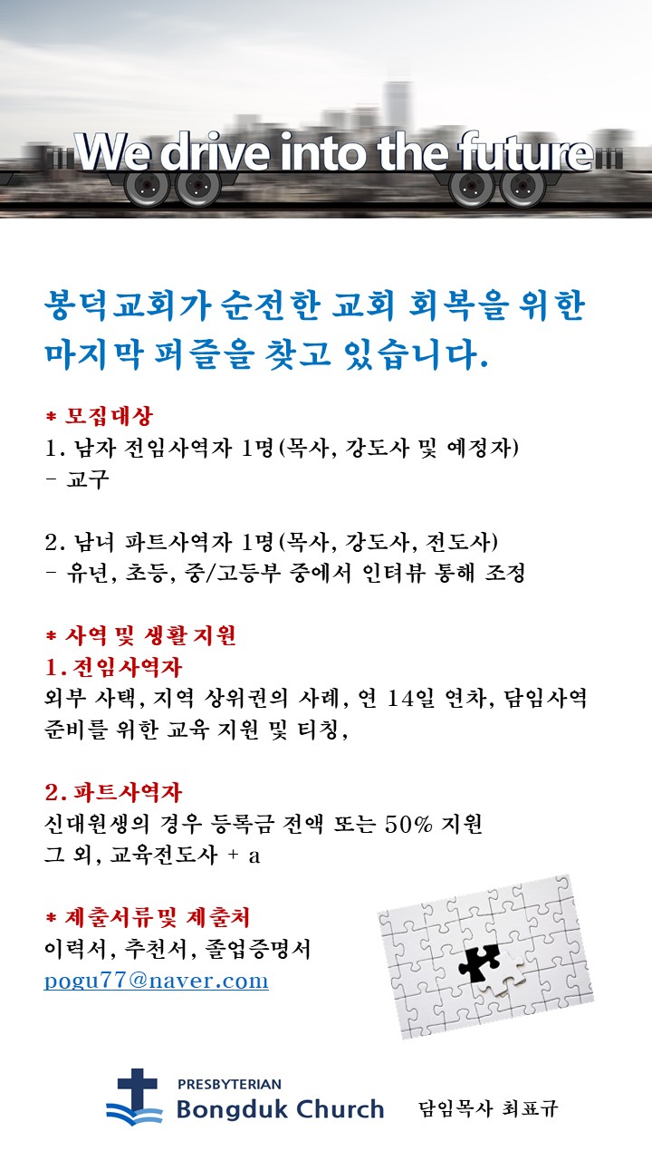 봉덕교회 사역자 청빙 공고