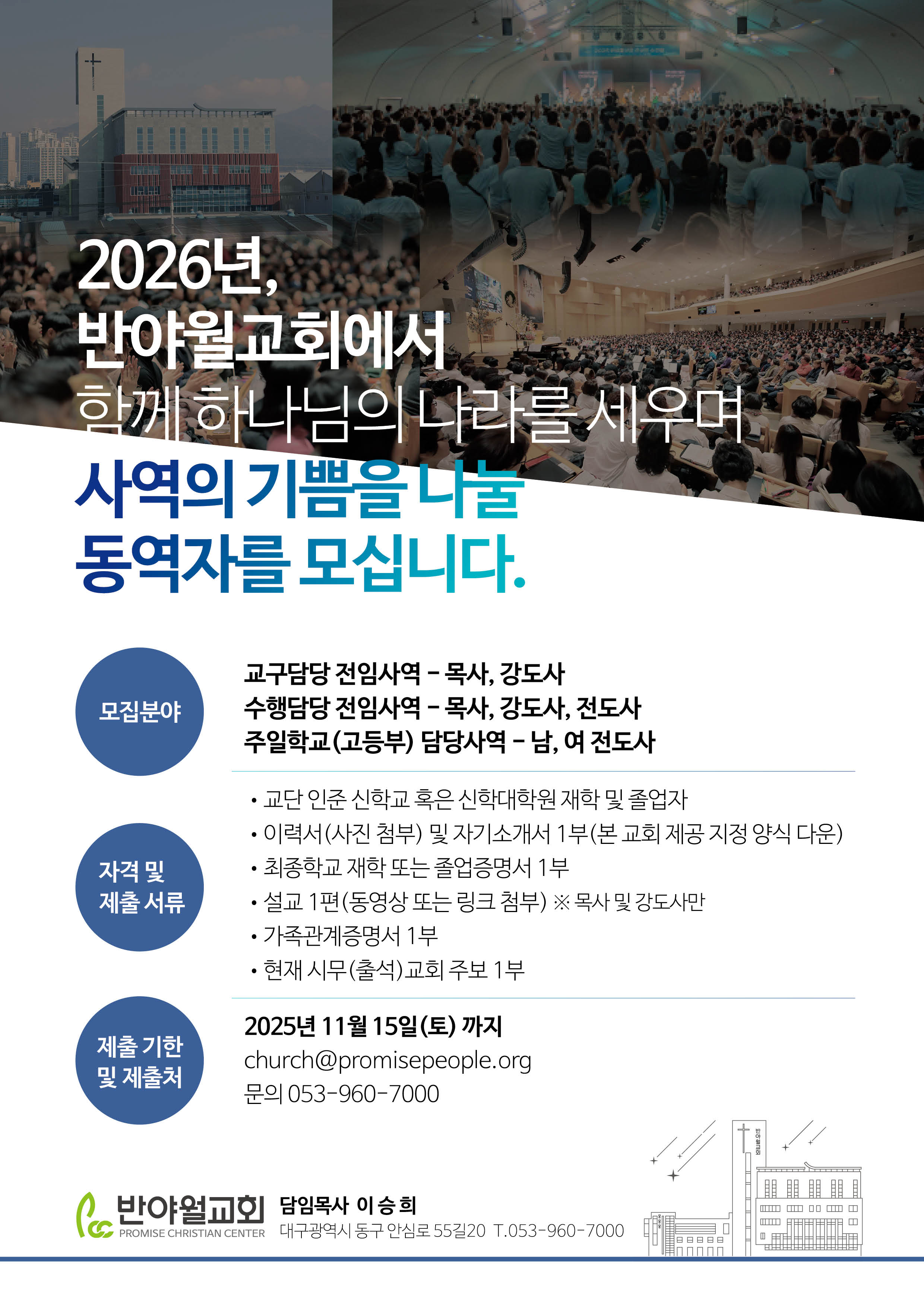 2026년 반야월교회와 함께할 동역자를 모십니다.