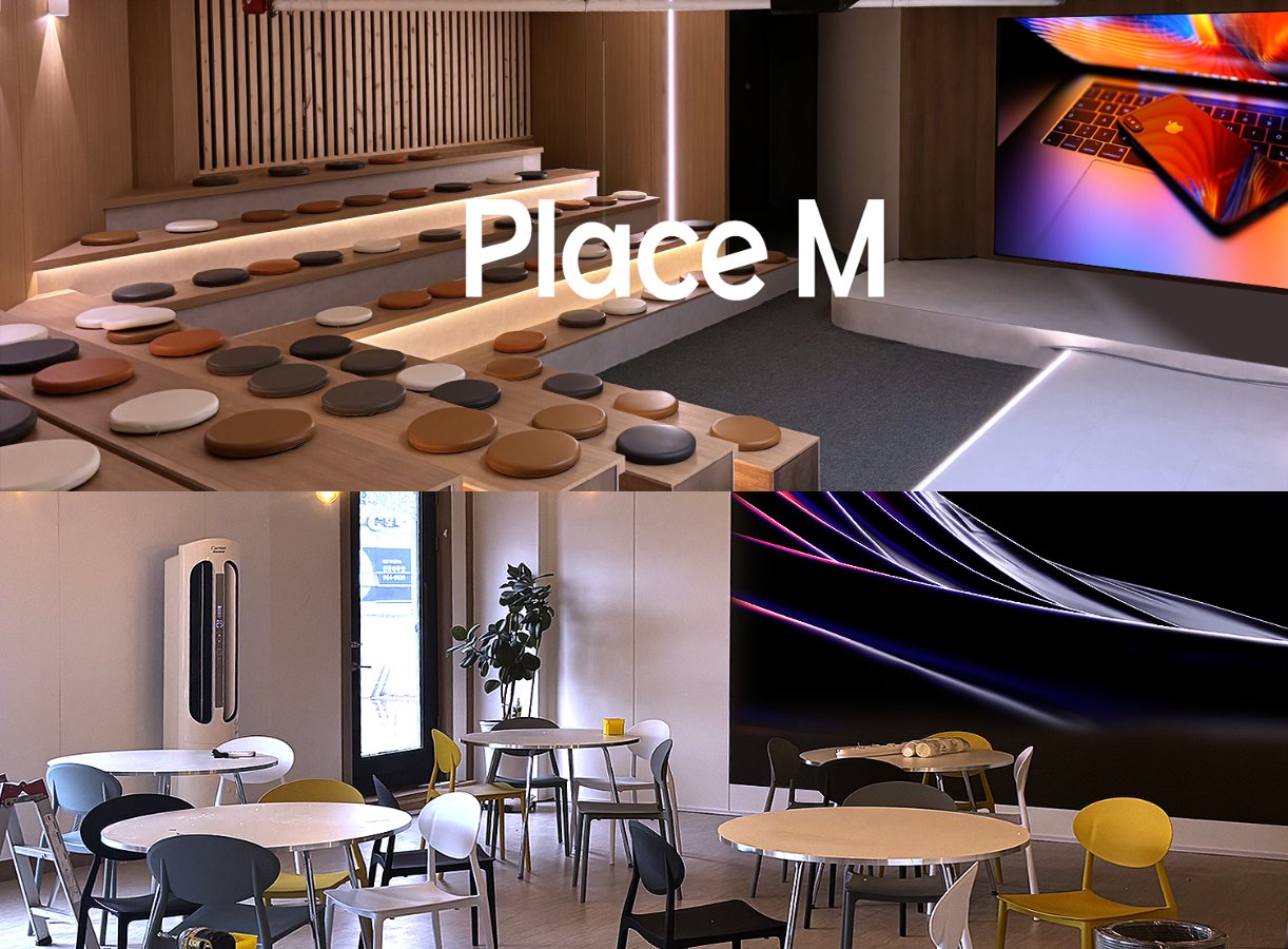 M홀 : 50석(30평 / 원형테이블) 시설 : 189인치 LED전광판 / 방송음향장비